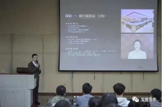 会议开始两家公司的老师先后就公司背景、公司文化以及公司现状、以及公司未来发展前景、岗位职责、福利待遇,工资待遇、年终奖、企业爱心公益、户外拓展等方面为同学们做了详细的介绍,并讲解了珠宝类学生如何在实习期更好的适应工作的方法。会上两位老师通过观看宣传纪录片、设计作品展示、现场提问的方式更好的让同学们了解了企业文化,并对以后的工作抱有美好的期待。