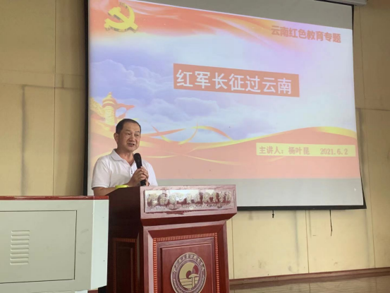 2021年6月2日星期三下午2点www.男人天堂特邀前旅游学院院长杨叶昆教授为www.男人天堂全体党员教师和20级全体旅游类专业学生进行题为“红色长征过云南”专题党史学习教育讲座。