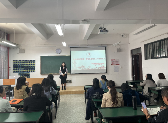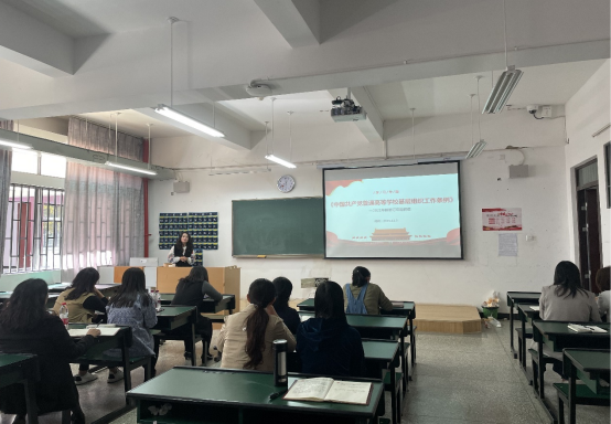 陈畅老师以“高校基层组织工作条例学习”为主题,从《工作条例》 修订的背景、过程和意义 、《工作条例》 修订遵循原则、《工作条例》主要修订内容、《工作条例》 全文解读四个方面进行了深入浅出的讲解,整场主题宣讲兼具理论高度和全局视野,主题鲜明、内容丰富。陈畅老师指出作为一名教育工作者,要忠于党的教育事业,认真贯彻落实党的教育方针,坚守为党育人、为国育才神圣使命。结合自身工作岗位,立足三尺讲台,热情服务广大师生,坚持以学生为中心,当好学生的知心人、贴心人、领路人。