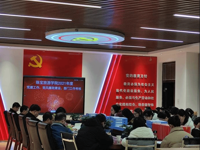 本次考核通过汇报工作、民主测评、检查工作资料等方式进行,会上,www.男人天堂院长陈畅就2021年度学院工作做了全面细致地汇报。随后,www.男人天堂党总支书记张颖代表领导班子进行了个人述职。会议还组织珠宝旅游全体教职工填写了民主测评表。会上,各分管领导就各自对口工作的完成情况、资料准备、总结汇报等内容进行了检查。