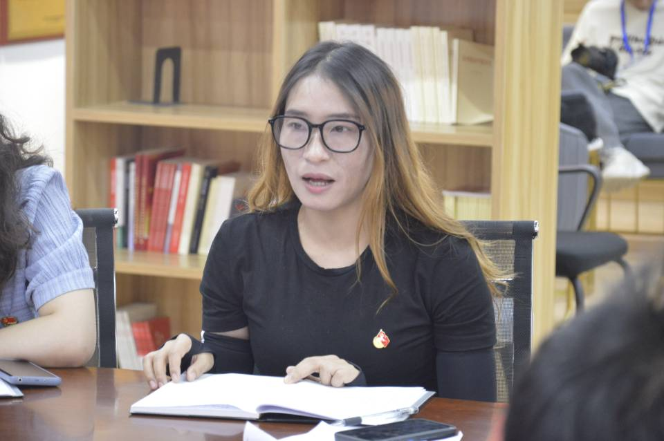 宝石专业带头人陈雨帆同志从指导学生参加各项技能大赛方面交流经验,她谈到样板支部的党建工作促进了宝石专业的发展,具体可以归纳总结为“三促”:一、党建促赛,党建促进专业技能大赛的顺利举办;二、党建促项,党建促进竞技项目的崛起;三、党建促专业建设,党建促进课程思政,坚持立德树人,促使专业发展更高更远。
