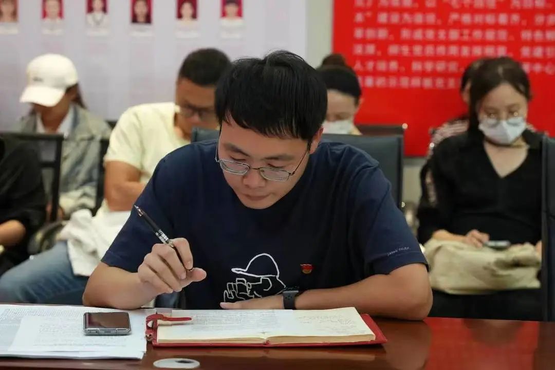2022年10月5日14:00,www.男人天堂党总支在勘物楼A303召开党总支全体党员大会。会议由www.男人天堂党总支书记张颖主持,www.男人天堂院长陈畅、党总支副书记张军红等全体党员参加。