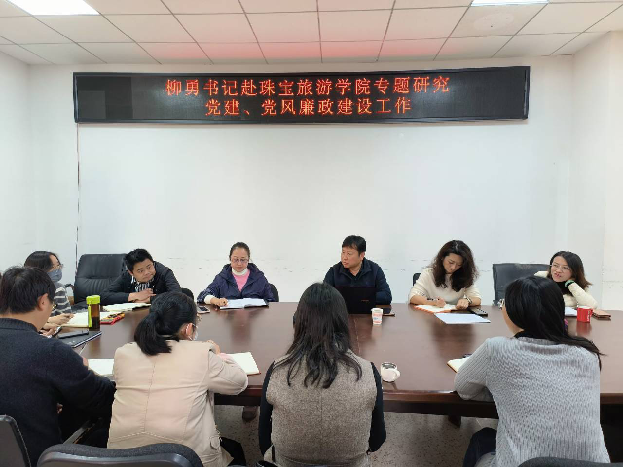 最后柳勇书记提出党总支要均衡发展,两个党支部要齐头并进。旅游党支部要有实质推进,突破瓶颈。教学方面要提高技能大赛的含金量,充分准备,取得国赛主办权。同时注重校园文化,建议学院文化要从底层开始发展,注重扩大知名度,积极引导学生社团活动正确的政治导向,扎实做好新闻和舆论引导,及时采取措施追查堵截有害信息,做好师生的思想工作。