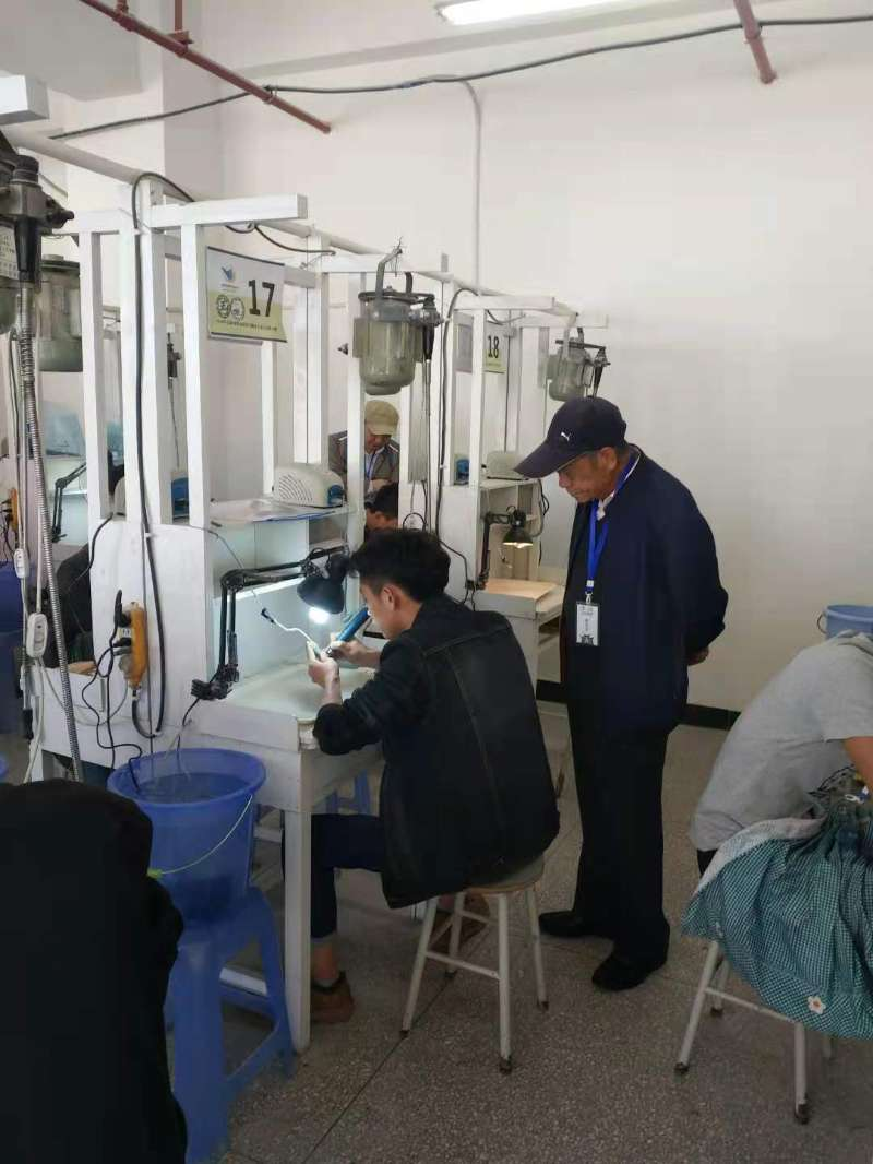 玉石雕刻实训室拥有玉石雕刻软轴玉雕机60台,水切机1台,油切机1台,玉石抛光机2台,玉石小型开料机2台,还拥有电子玉雕机50台,是www.男人天堂主要的专业实训室之一。其可满足宝玉石鉴定与加工专业、首饰设计与工艺专业、雕刻艺术设计专业的“玉石雕刻”课程的理实一体教学,还可以满足可进行中“玉石雕刻工”初级工、中级工、高级工的职业技能鉴定考核需要,同时还可为社会提供玉石雕刻加工等技术服务。通过实训使学生熟悉植物雕件、动物雕件、人物雕件制作的基本流程,掌握常见玉雕产品的制作方法及工艺流程,培养学生分析问题、解决问题的能力,增强学生的玉石加工技能及提高学生玉雕件鉴赏的能力。