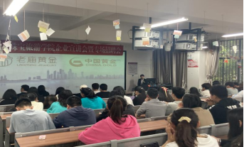 老庙黄金的金先生和李女士通过ppt、照片等形式分别从企业介绍、门面展示、市场占有率、薪资待遇四个大方面进行讲解。随后,同学们也分别向公司负责人提出了一些与将来工作相关的实际问题,并得到了满意的回答。期间,金先生对同学们说:“努力和回报一定会成正比”,这无疑是对学校、同学们的肯定,更是对同学们的一种期待与鼓励。