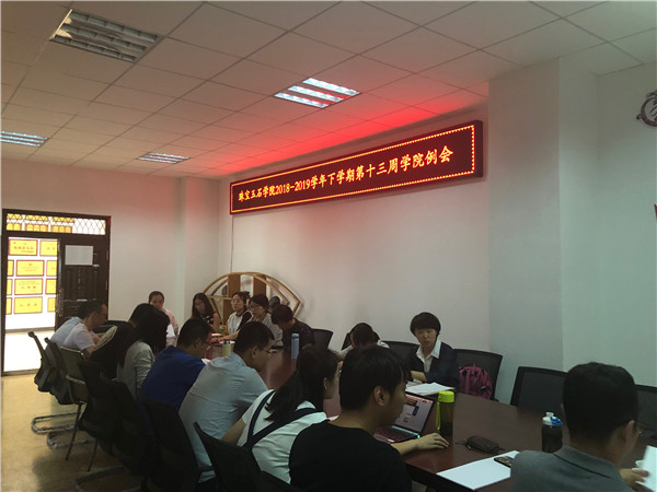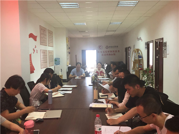 2019年5月24日下午,珠宝玉石学院2018-2019学年下学期第十三周学院部门例会在云南国土资源职业学院阳宗海校区勘物学院办公室召开,珠宝玉石学院党总支书记陈畅、副院长刘德利、副院长汪朝飞及学院全体教师参加了此次会议。