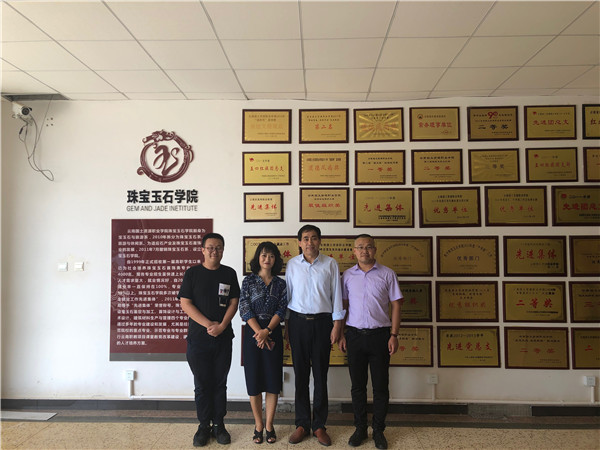 2019年6月26日下午,珠宝玉石学院与翡标奢品现代学徒制签约仪式在学院办公室举行。双方就如何推进校企合作、“现代学徒制”等方面进行深入交流,双方就合作意向达成一致,签订了协议书、举行了授牌仪式并对企业人员颁发了聘书。