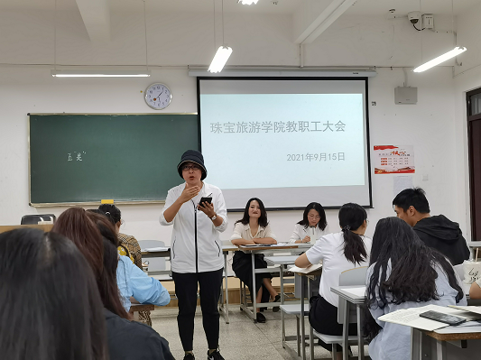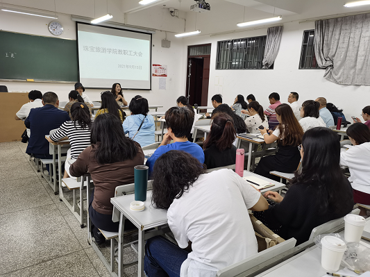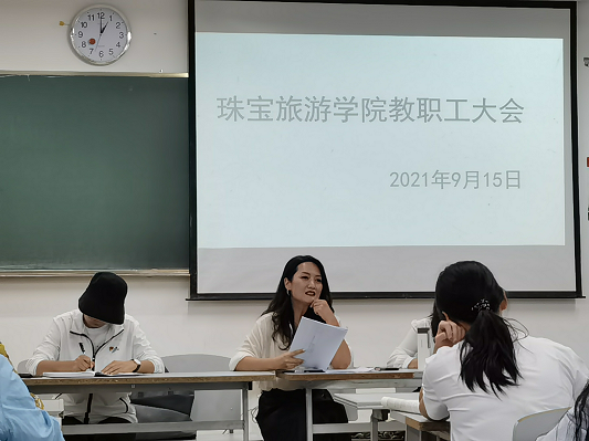 2021年9月15日星期三中午12:40分www.男人天堂全体教师在笃行楼201教室召开了教职工大会。本次大会共有三项流程。