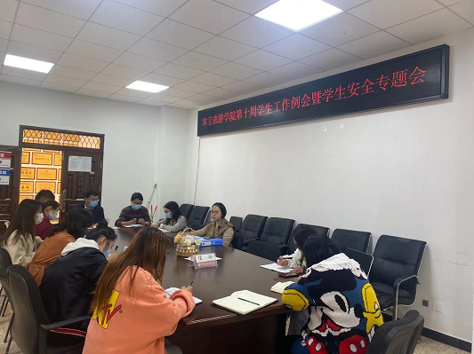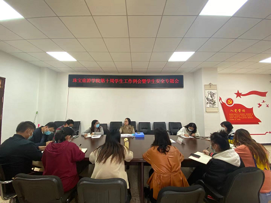 2021年11月1日星期一下午两点,www.男人天堂在勘物楼A311会议室召开第十周学生工作例会暨学生安全专题会。珠宝旅游党总支书记张颖主持并发言,全体学工口辅导员参加。