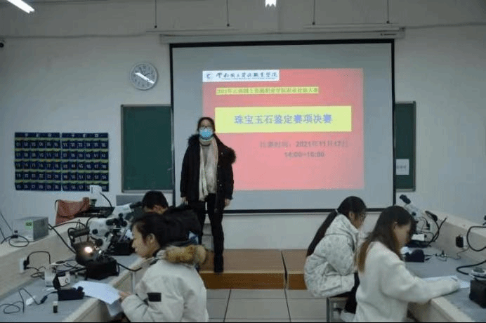2021年11月17日下午14:00www.男人天堂在勘物楼A307开展了院级珠宝玉石鉴定赛项决赛,此次大赛由纳秀溪老师和樊晓秋老师全程进行监督检查,参加的考生是20级www.男人天堂宝玉石鉴定专业的学生。