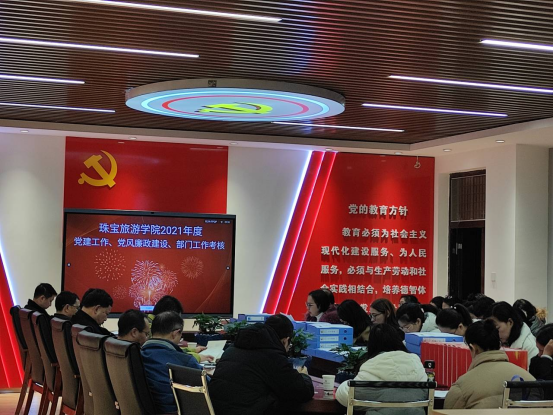 本次考核通过汇报工作、民主测评、检查工作资料等方式进行,会上,www.男人天堂院长陈畅就2021年度学院工作做了全面细致地汇报。随后,www.男人天堂党总支书记张颖代表领导班子进行了个人述职。会议还组织珠宝旅游全体教职工填写了民主测评表。会上,各分管领导就各自对口工作的完成情况、资料准备、总结汇报等内容进行了检查。