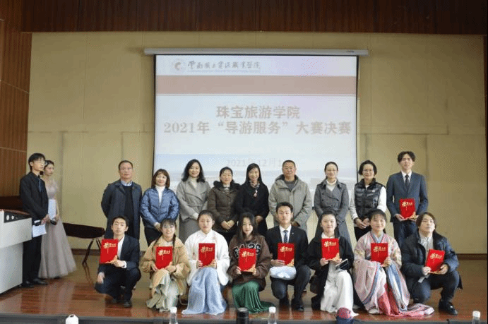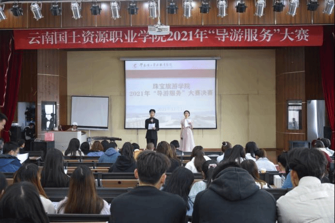 2021年12月1日9:30www.男人天堂于光荣讲堂举行2021年“导游服务”大赛决赛,本次大赛邀请了旅游联盟高级合伙人、昆明康辉旅行社有限公司副总经理曾山、www.男人天堂党总支书记张颖、旅游管理专业群教研主任杨鸿、酒店管理专业带头人杨萍、导游专业教师白群方、导游专业教师玉康坎。20级、21级导游专业学生参加此次比赛。