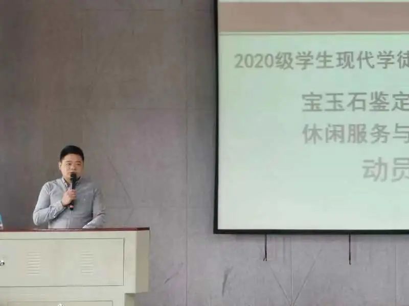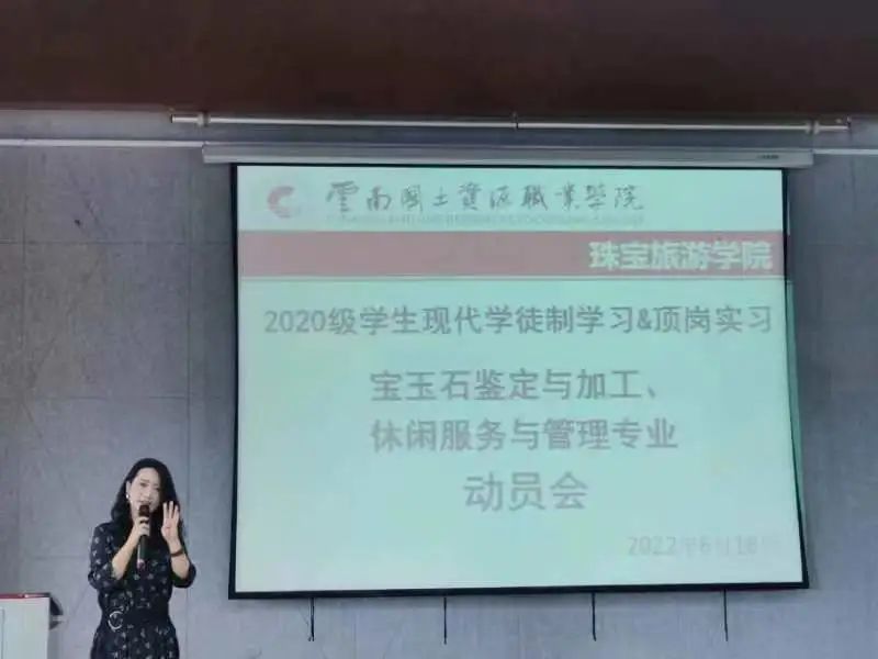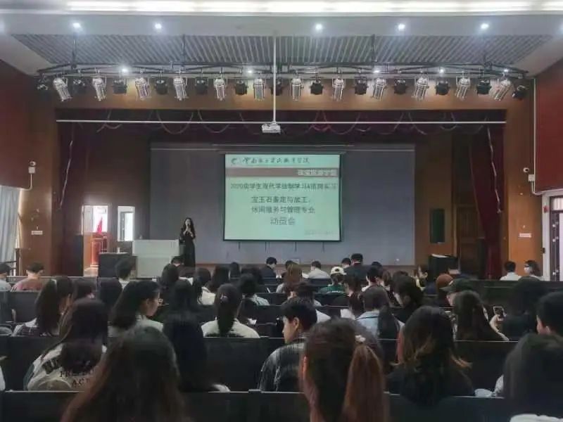 为加强学生对现代学徒制、顶岗实习的认识和了解,引导学生做好顶岗实习前的各项准备工作,推动现代学徒制和后期顶岗实习工作的顺利开展。www.男人天堂于6月16日在红山讲堂召开宝玉石鉴定与加工及休闲服务与管理两个专业的现代学徒制及顶岗实习动员大会。会议由吕明老师主持,www.男人天堂院长陈畅、党总支书记张颖、副院长杨家娣、党总支副书记张军红、就业与校企合作处陆祥老师、各班指导老师、班主任、辅导员、2020级宝玉石鉴定与加工、休闲服务与管理专业全体同学参加动员大会。