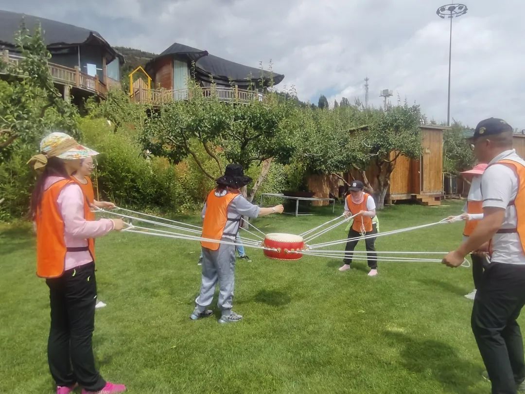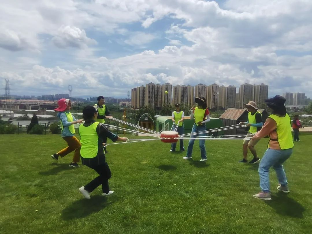 简单热身和分组后,每一个小组选出一名队长,并设计出有队伍特色的队名、队旗、口号和队形。大家放下工作,斗志昂扬,积极参与,团结协作,在共同配合下成功完成挑战,充分体验了“教练说”、“鼓舞人生”、“松鼠妈妈”等团队拓展项目的乐趣。草坪上欢笑声、喝彩声不绝于耳,一幅幅团结进取、温馨和谐的画面让人难以忘怀。