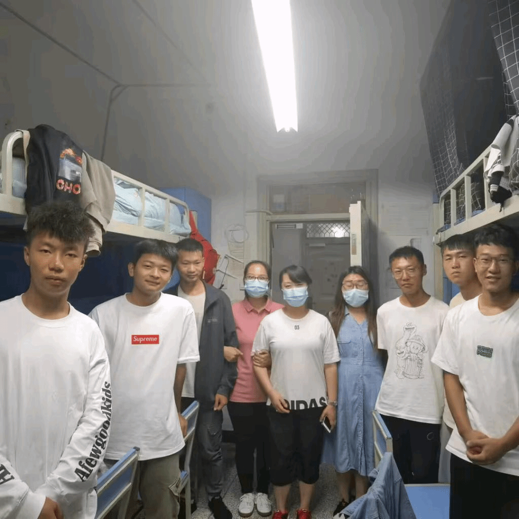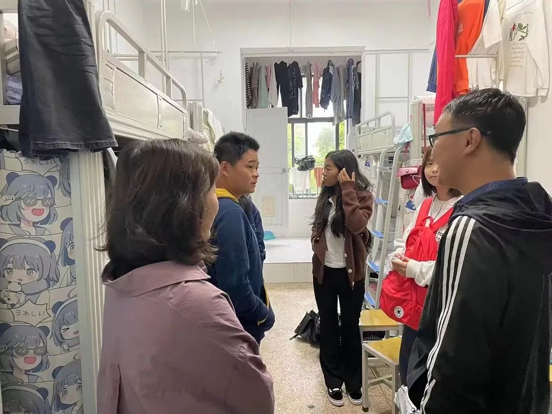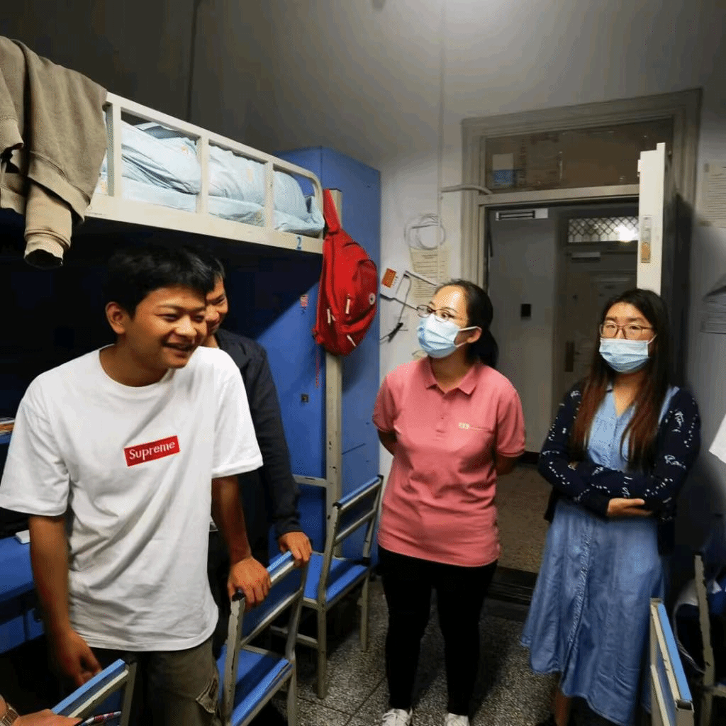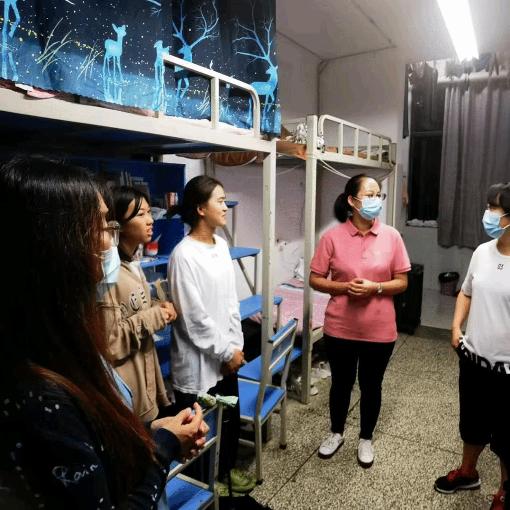 第二天一早,党总支副书记张军红带辅导员来到了新生女生宿舍,了解新生到校情况,就学习生活等与同学们进行了深入交流。最后向同学们强调要严格遵守校园疫情防控的相关规定,坚持在校期间的每日体温检测和健康打卡,严格按照学校防疫工作通知要求,配合学校做好相关防疫工作。