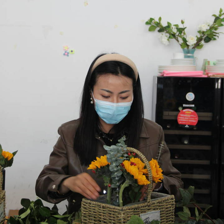 在花艺师的指导下,老师们兴致盎然地构思造型、挑选材料,用灵巧的双手将各色花卉配以枝叶点缀。