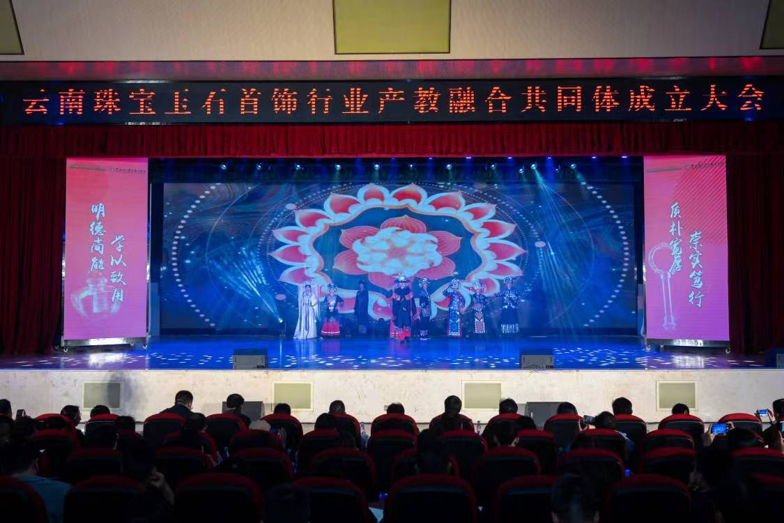 2023年4月10日,云南珠宝玉石首饰行业产教融合共同体成立大会在我校明礼堂召开。共同体指导单位云南省教育厅、牵头单位云南省珠宝玉石首饰行业协会、云南国土资源职业学院和84家成员单位代表出席成立大会。学校党政领导班子成员、部分中层干部和师生代表参加会议。会议由副校长张云霞主持。