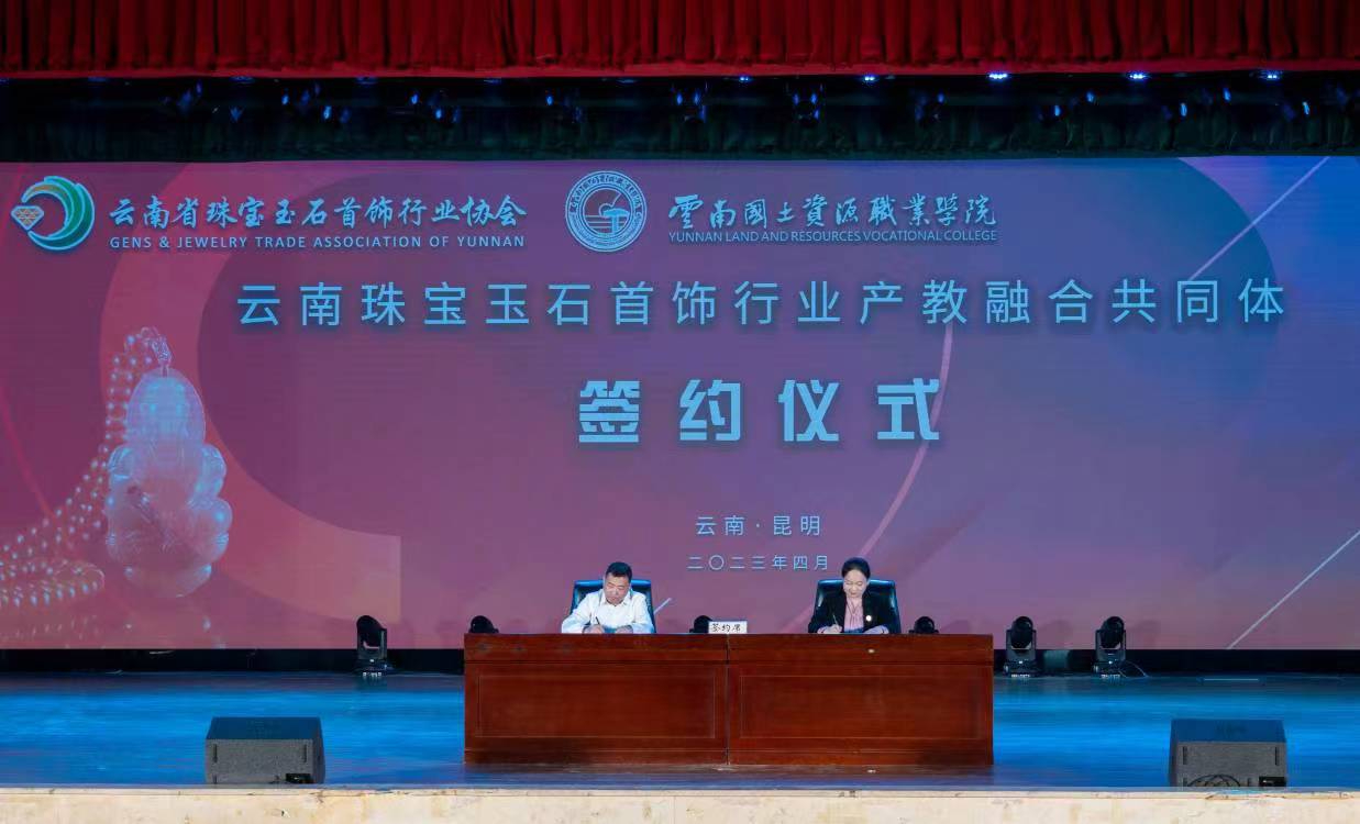 云南珠宝玉石首饰行业产教融合共同体是在云南省教育厅的指导下,由云南省珠宝玉石首饰行业协会和云南国土资源职业学院共同牵头成立,目前已有84家成员单位。其中,中国地质大学(武汉)、昆明理工大学、云南民族大学、保山学院、滇西应用技术大学、德宏师范高等专科学校、昆明冶金高等专科学校、云南交通职业技术学院、云南旅游职业学院等23家普通高等院校和职业院校,云南省石产业促进会、广东省时尚首饰及配饰协会等14家行业协(商)会,云南省珠宝玉石质量监督检验研究院等2家科研机构,昆明百货大楼珠宝经营有限公司、深圳飞博尔珠宝科技有限公司等45家企业成为共同体的第一批成员单位。