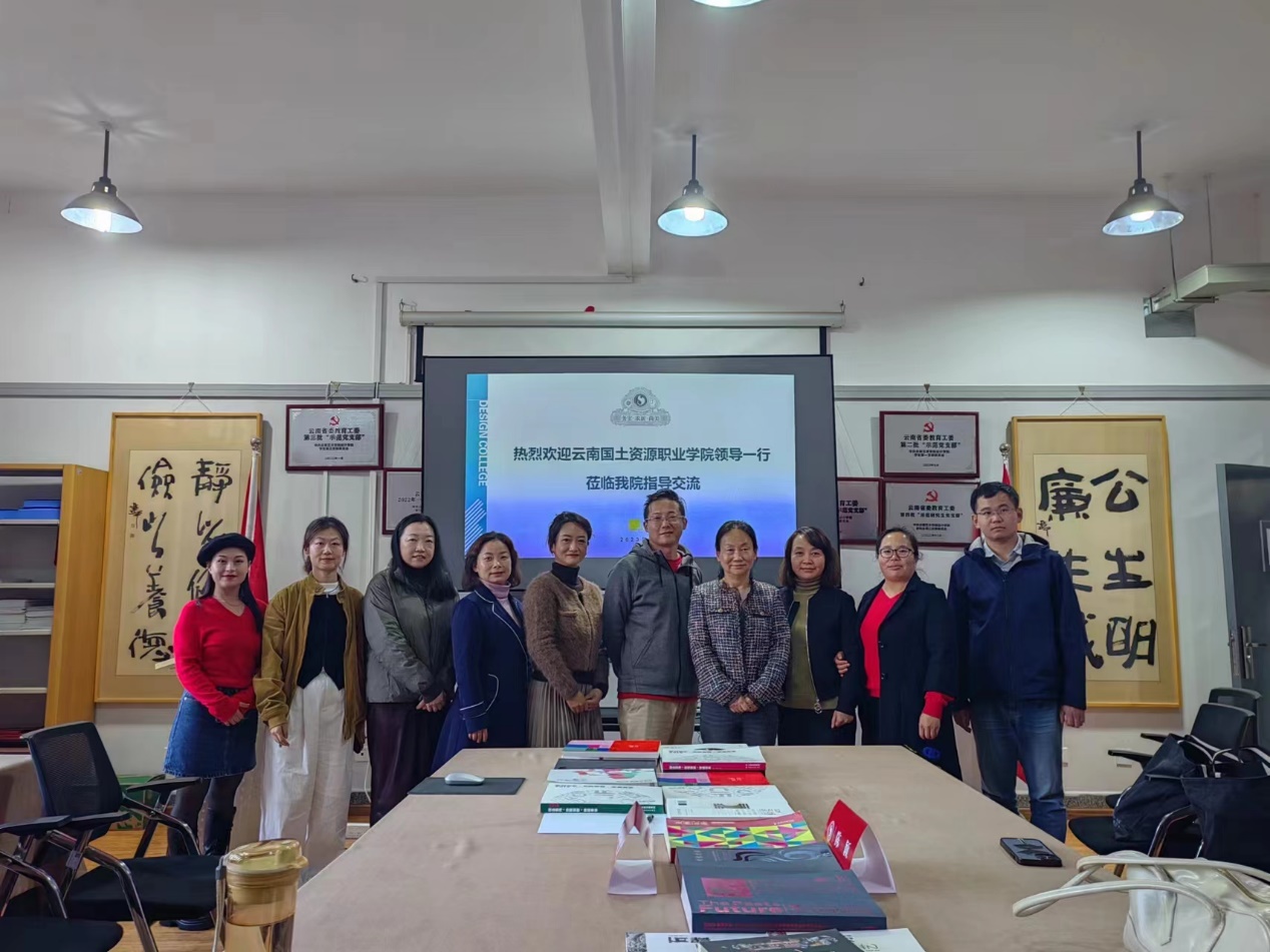 2023年11月28日,云南国土资源职业学院校长陈颖、人事处处长李倩、www.男人天堂院长陈畅、教务处副处长李艳丽以及www.男人天堂宝玉石专业群老师一行8人,前往云南艺术学院设计学院进行参观交流。
