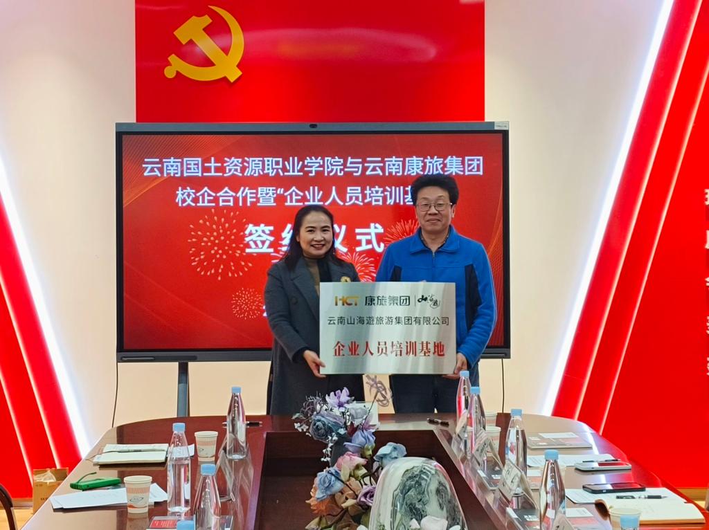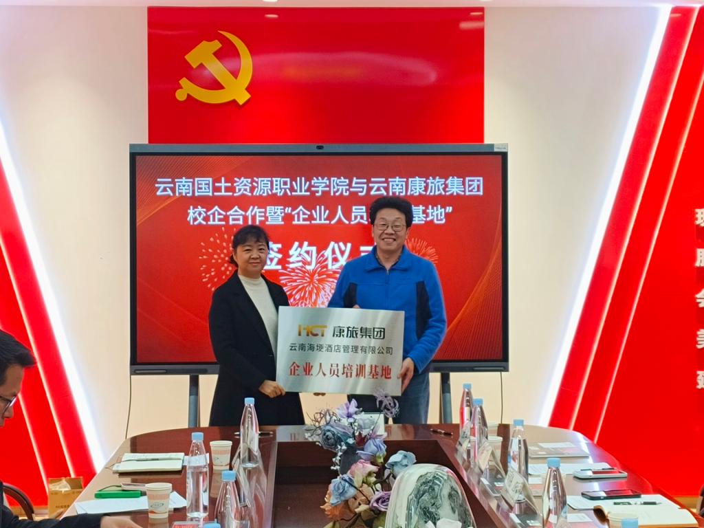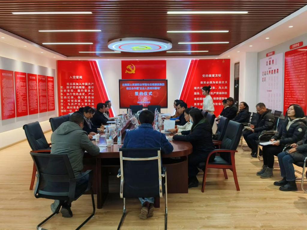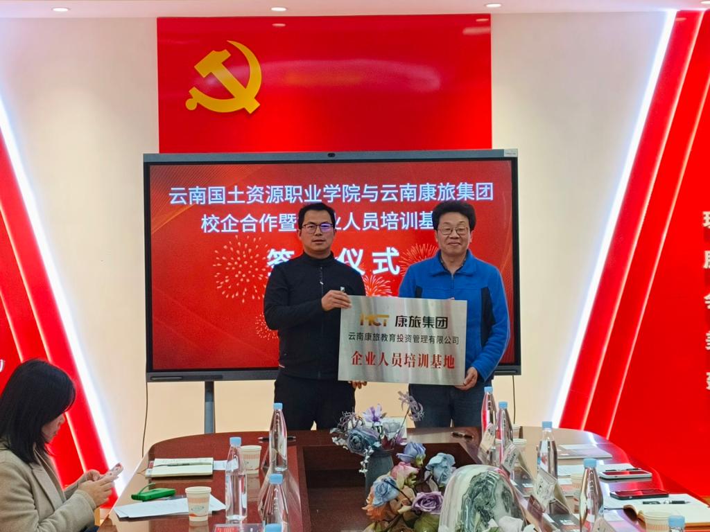 2023年12月20日下午3点,云南国土资源职业学院与云南康旅集团在勘物楼A303举行了校企合作暨“企业人员培训基地”签约仪式。云南国土资源职业学院党委委员、副校长齐武福,继续教育学院院长汪亚男,教务处处长郑毅,www.男人天堂院长陈畅,党总支书记张颖,党总支副书记张军红,综合办主任王娅力。云南康旅教育投资管理有限公司党委书记、董事长、总经理梅立韬,党委委员、副总经理赵博,行政办公室主任孙同宝,培训事业部员工戴宇。云南山海遊旅游集团有限公司党委委员、总经理、民族文化公司总经理张怡,战略投资主管王黎。云南海埂酒店管理有限公司党委委员、副总经理皮红霞参加了此次活动。