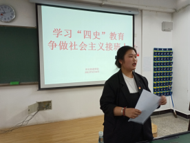 会议最后总结到:“以史为镜,可以知兴替;以史为鉴,可以知得失。”回望来时的路,看清脚下的路,坚定前行的路,学习“四史”,增强党的意识、弘扬爱国主义、激发奋斗精神,我们要努力先行一步、学深一步。通过回顾革命先辈的伟大事迹,反思自己所应肩负起的责任和使命,将个人才华和中华民族伟大复兴的历史重任有机结合,肩负起新时代历史的责任和担当。