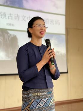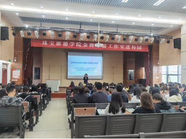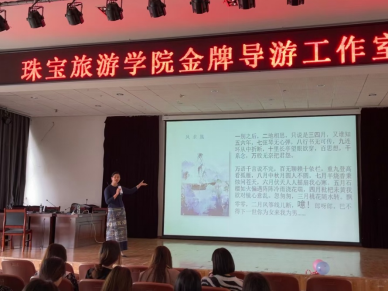 第二位是高级导游、国家旅游局“名导进课堂”师资库成员、文旅部“金牌导游”、茶文化传播者郑耕耘老师,她讲座的主题是《诗文地理------解锁古诗文中的旅游密码》,郑老师从数字切入正题,从诗文中的山水、城市和风光,引出了旅游中的家国情怀,诗+人=故事=旅游讲解,鼓励同学们多看书多学习,知其然更要知其所以然,要爱我中华,爱我家园。