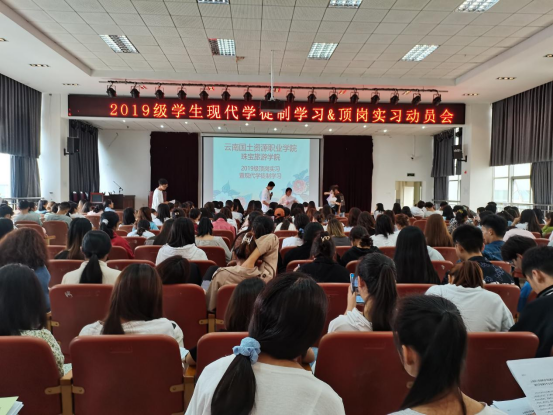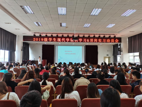 为进一步加强和规范现代学徒制学习及顶岗实习管理,确保实习质量,保障实习活动顺利实施。www.男人天堂于2021年6月23日下午在经开校区图书科技楼三楼报告厅举行2019级现代学徒制学习及顶岗实习动员大会。www.男人天堂院长陈畅老师、副院长杨家娣老师、张坤老师和相关部门负责老师以及2019级酒店管理、休闲服务与管理、老年服务与管理专业全体学生参加本次动员大会。