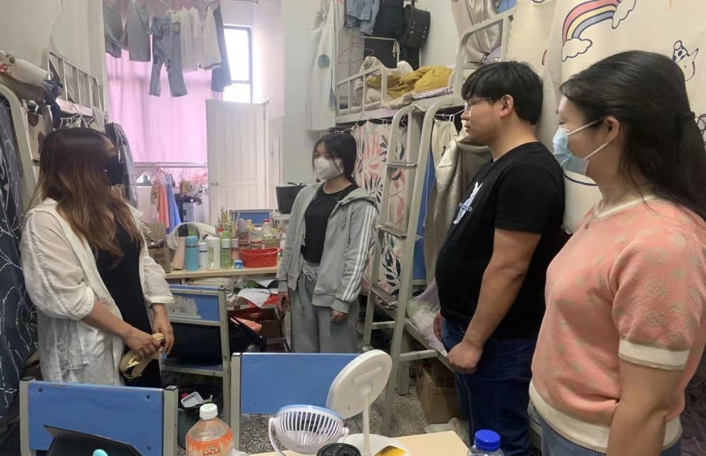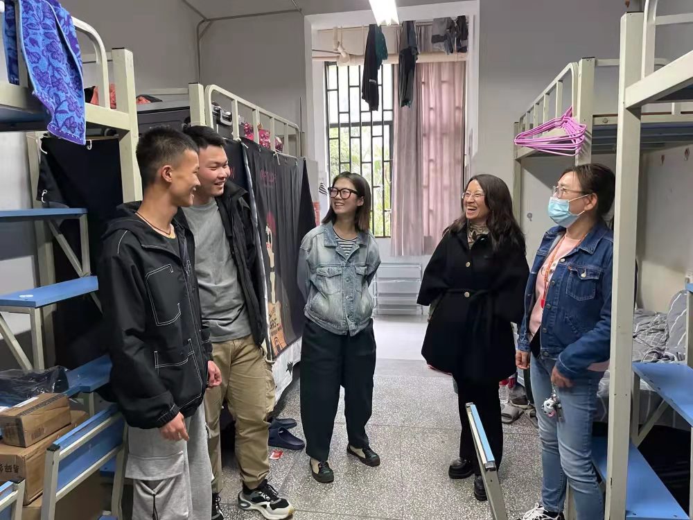杨家娣副院长带领大家依次走进了多间宿舍,杨副院长代表www.男人天堂的党政领导班子表达了学院对同学们的亲切关怀,详细了解并询问了同学们的学习生活情况、节日安排等,勉励同学们要珍惜美好的青春时光,扎实学好专业本领,努力提高综合素养,争做德智体美劳全面发展的社会主义建设者和接班人。她告知同学们五一期间学校准备了丰富多彩地活动,大家可以走出宿舍多去参加活动,感受大学生活的美好;叮嘱同学们,五一期间一定注意出行安全,妥善保管财物,重视个人防护,勤洗手多通风,加强体育锻炼,注意身体健康。同学们表示学院领导和老师们的到访,让平淡的五一假期多了几分欢愉。