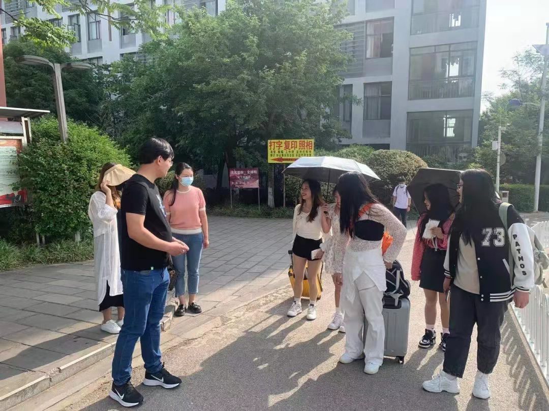 走访中,一行人恰巧碰到了正要离校的同学,老师们详细询问了同学们的行程安排,交待了疫情防控的相关注意事项,还提醒大家回家途中一定要注意安全,到家后记得给班主任和辅导员老师报平安。