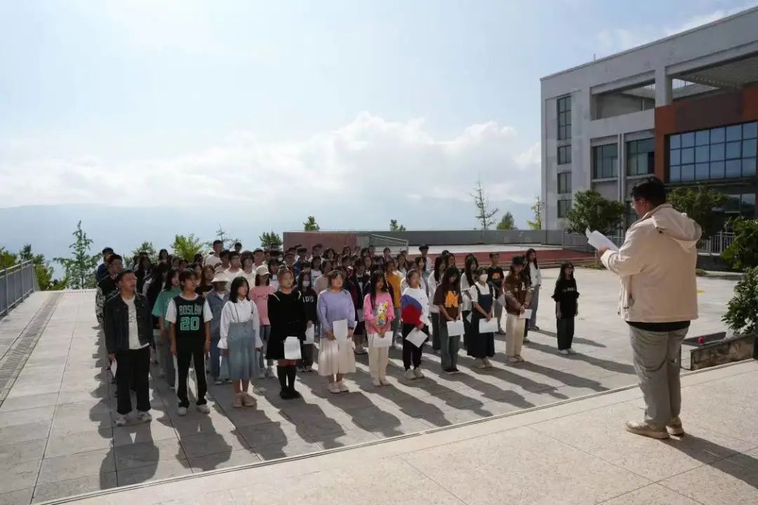 活动开始,全体人员站在洒满晨辉的国旗下,共唱中华人民共和国国歌——《义勇军进行曲》。
