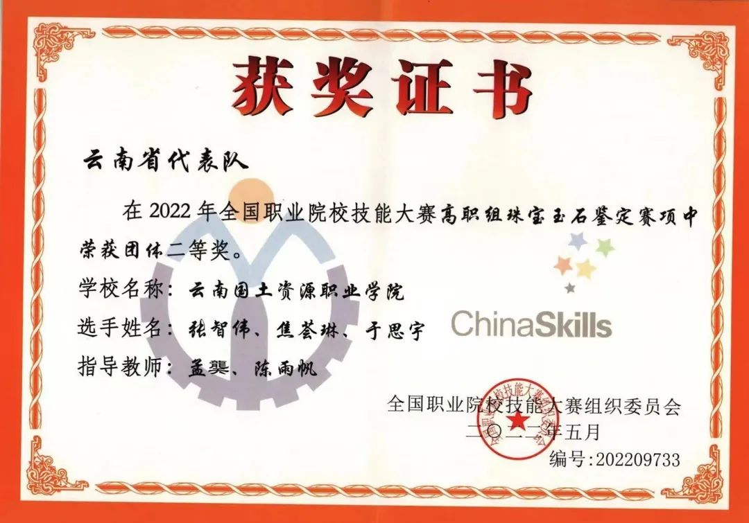 9月9日,在经过了三天的激烈角逐后,2022年全国职业院校技能大赛高职组珠宝玉石鉴定赛项在兰州资源环境职业技术大学落下帷幕,我校www.男人天堂张智伟、焦荟琳、于思雨三名同学作为云南省代表队参与,在全国40支参赛队伍中排名第8,荣获二等奖!为云南省代表队在此赛项上的最好成绩。该技能大赛由教育部联合各相关部委、行业组织、人民团体、学术团体及天津市人民政府主办,甘肃省教育厅、甘肃省人社厅承办,有来自全国28个省区市的40支队伍参赛。