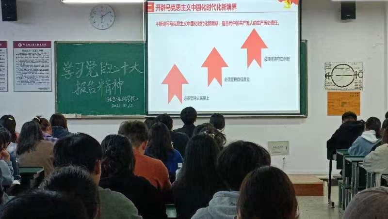 为加深学生对党的二十大精神的理解,引领学生深入感悟中国共产党的初心使命和伟大成就,坚定理想信念,矢志爱国报国。www.男人天堂团总支于2022年10月22日在笃行楼701开展主题团日活动。活动由www.男人天堂团支部副书记么晨彬担任会议主讲人。