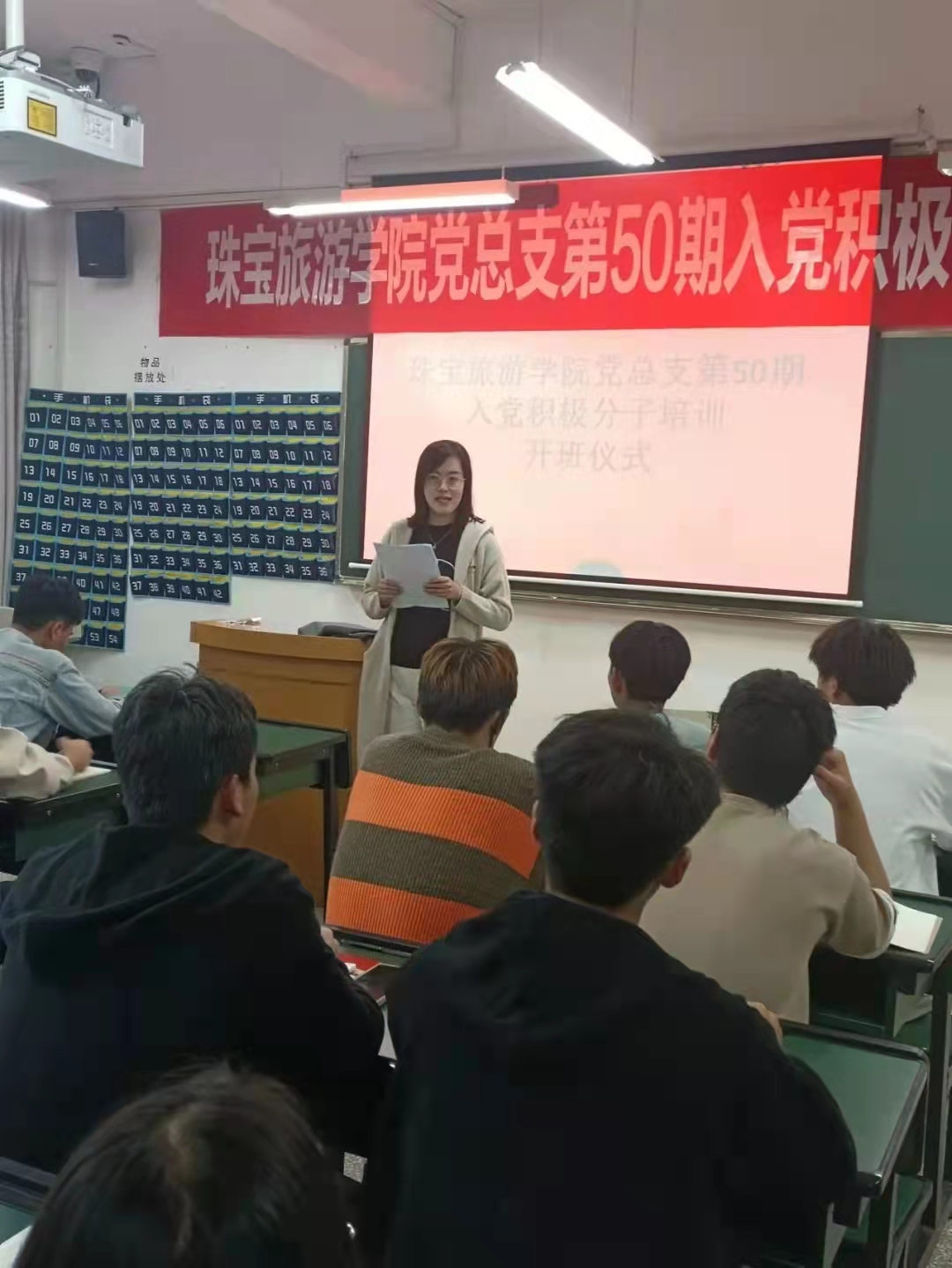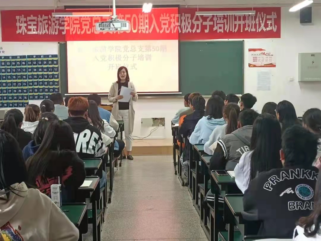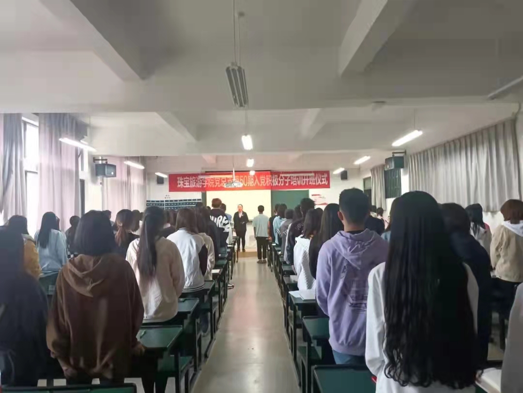 开班仪式分为三个阶段,大会第一项:全体起立,奏唱国歌。本次开班仪式在高昂的歌声中拉开帷幕。第二项,王蕊老师进行了会前动员讲话并宣读了本届入党积极分子培训班的课程安排与考核方式,做了严格的纪律要求。第三项,张颖书记致辞,她主要强调三点:“第一,机会难得,值得珍惜。希望大家珍惜机会,认真对待这次培训,不辜负组织的信任和精心培养。第二,讲求方法,学有所成。把学习所得内化于心、外化于行,把他律变为自律。第三,尊师守纪,树立形象。集中培训不是一门选修课,而是一门必修课;不是走一次形式,而是要接受一次考验;不是一次单纯的知识培训,而是一次提前进行的党性锻炼。”她希望此批入党积极分子以实际行动争取早日成为一名合格的共产党员,为党的事业贡献自己的力量。